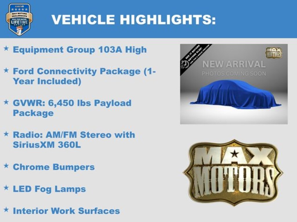 4WD, Chrome Bumpers, Cloth 40/20/40 Front Seat, Equipment Group 103A High, Ford Connectivity Package (1-Year Included), GVWR: 6,450 lbs Payload Package, Interior Work Surfaces, LED Fog Lamps, Radio: AM/FM Stereo with SiriusXM 360L, Rear Window Fixed Privacy Glass with Defroster, SYNC 4 with Enhanced Voice Recognition, Wheels: 17" Silver Painted Aluminum.